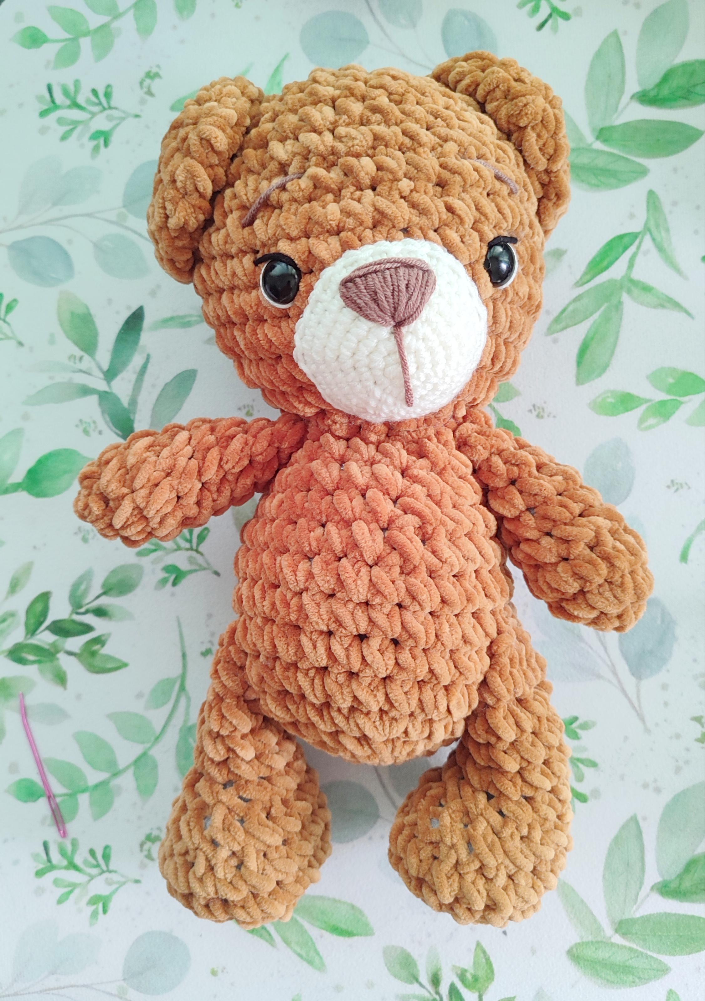 Materiale folosite: ochi de plastic, fir plusat Dolce YarnArt (Micro Poliester), fire Alize BabyBest (90% acrilic, 10% Bambus), umplutura de plus (poliester)