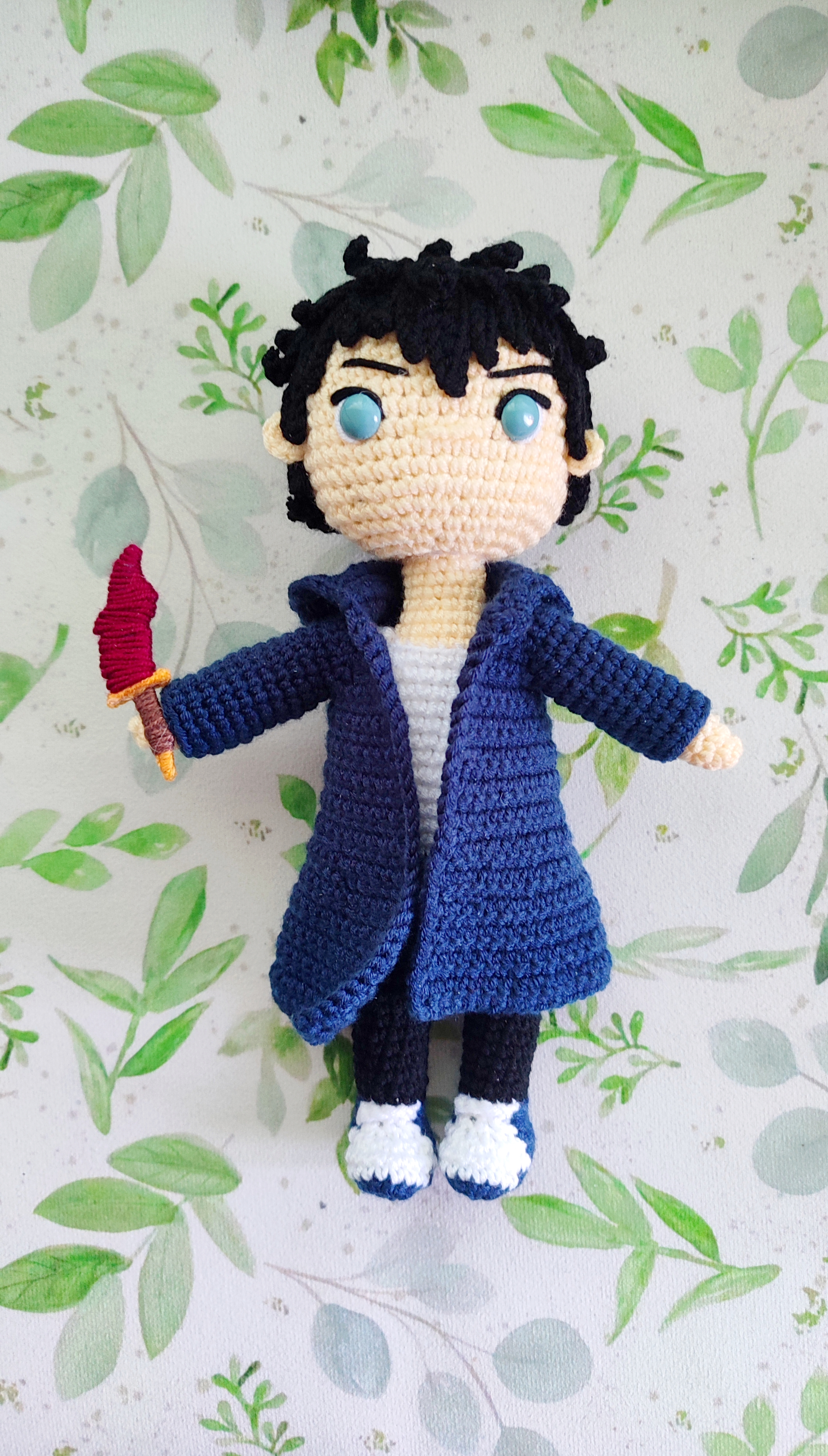 O figurina crosetata, de plus, cu Jin Woo Sung din anime-ul Solo Leveling. Un produs epic pentru totii fani anime-ului.