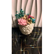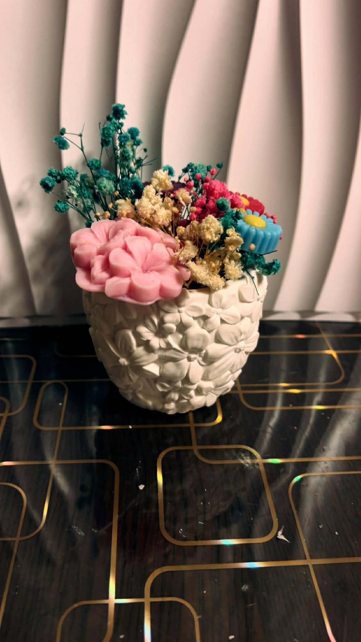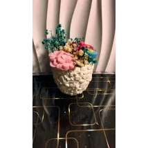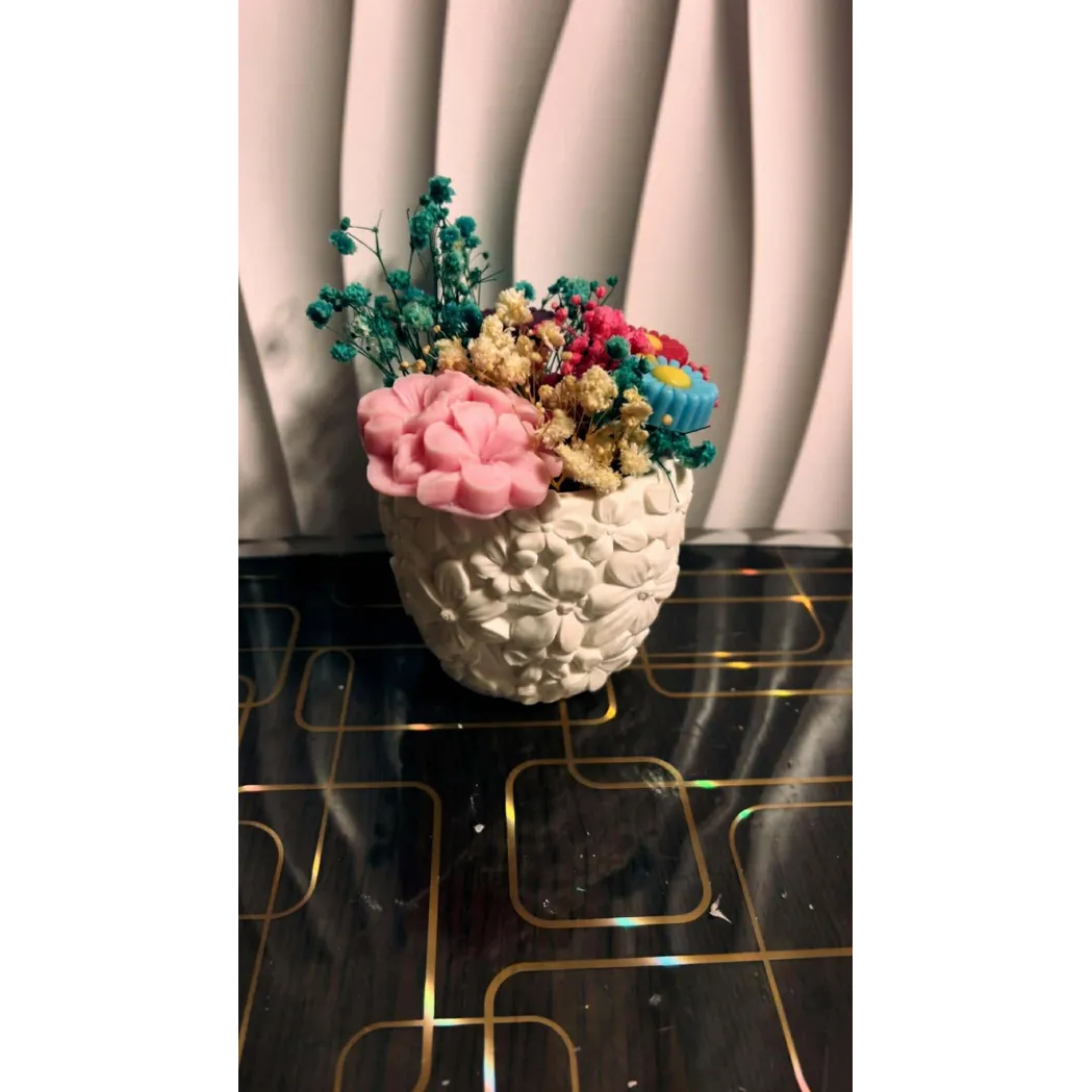 Vaza din ipsos , decorata cu flori uscate si lumanari parfumate