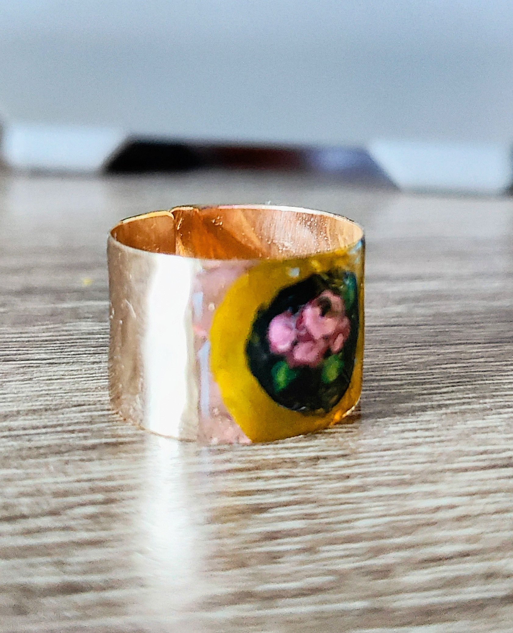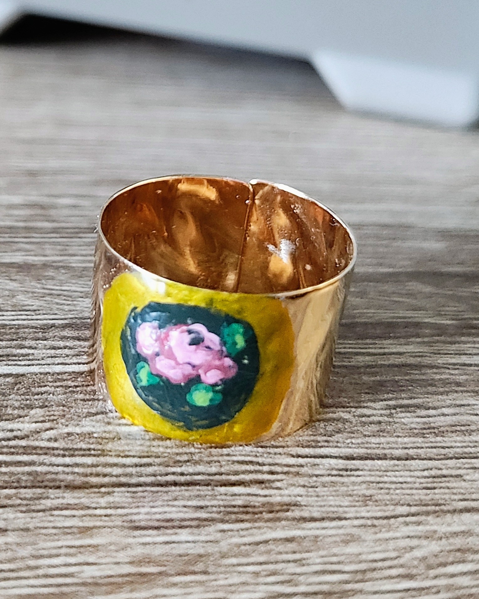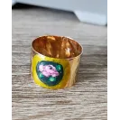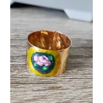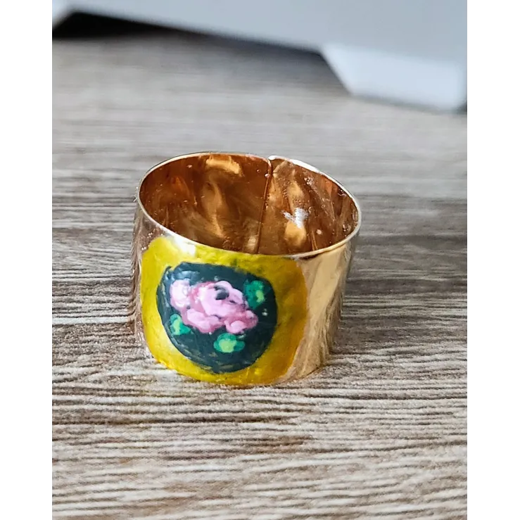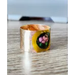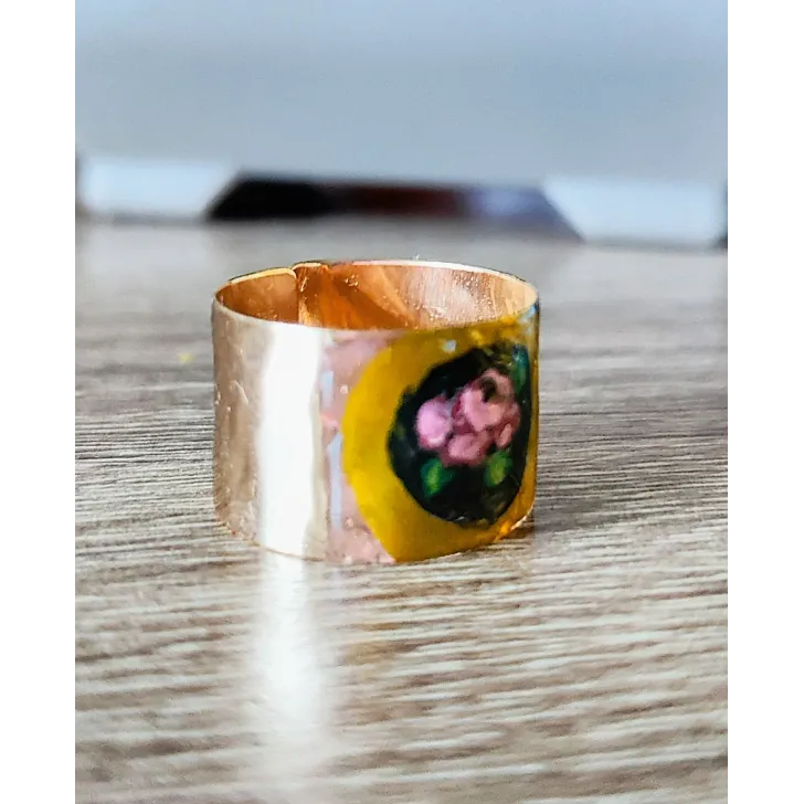 Inel reglabil din argint placat cu aur, pictat manual.