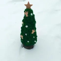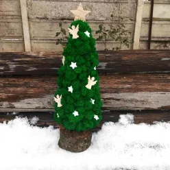 Acest bradut adorabil din licheni stabilizati verde intens, aduce in casa un farmec natural si rustic. Realizat pe o felie groasa din lemn, decorat cu ingerasi din lemn si stelute mici din polistiren, bradutul poate fi amplasat pe masa, la fereastra sau pe orice suprafata plana, pentru a aduce spiritul festiv al Craciunului mai aproape. Nu rata ocazia de a adauga un strop de natura in casa ta de sarbatori, sau ofera-l celor dragi! Impreuna cu bradutul, veti primi si informatii si instructiuni de ingrijire ale lichenilor stabilizati.