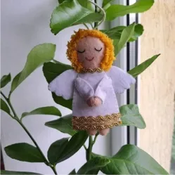 Este realizat manual din fetru și cusut manual. Detaliile feței sunt brodate. Se poate agăța în brad, pe diverse ghirlande, etc. Lungime aproximativă 8 cm.