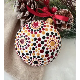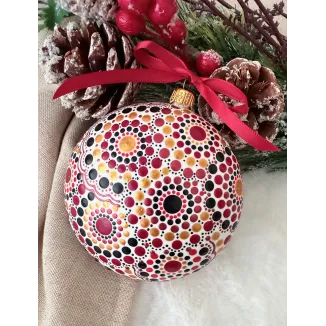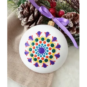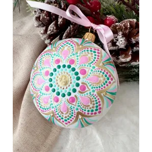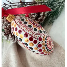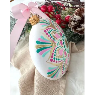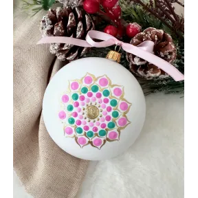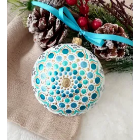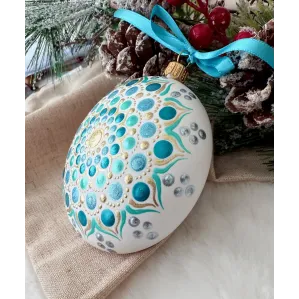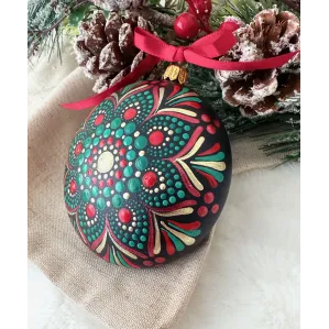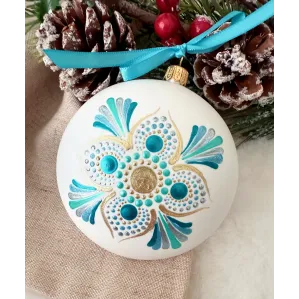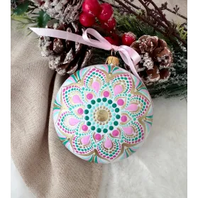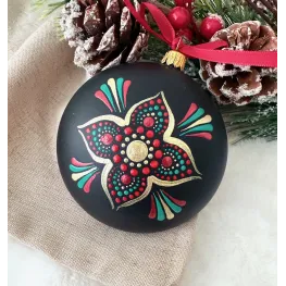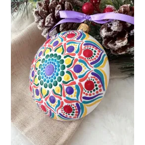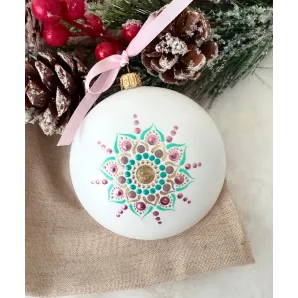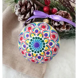 Un glob care nu doar decorează, ci inspiră. Pictat manual în stil mandala, fiecare detaliu spune o poveste despre armonie și echilibru. Transformă-ți spațiul într-un colț de magie handmade. Potrivit pentru decor interior, cadouri spirituale sau colecționari de artă handmade. Fiecare glob este pictat individual, ceea ce îl face unic. Tip produs: Lucrat manual Materiale: brad, cadou, craciun, decoratiune brad, glob pictat, mandala, ornament brad, ornament pictat, pictat manual, unicat Dimensiuni: 10 cm