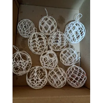 Globuleț croșetat  Diametru între 8,5 și 11,5 cm, Fabricat din macrame,acril, rosa sara cristal,la alegere. Culori deasemenea la alegere. Se pot agata in pomul de Crăciun sau chiar la fereastră