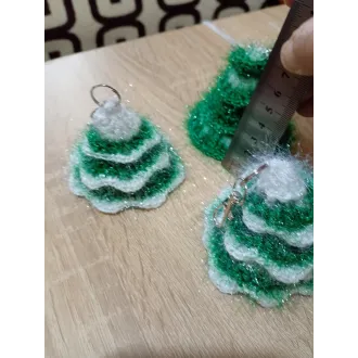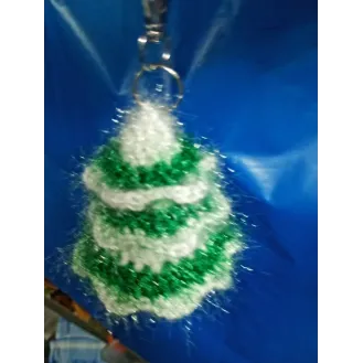 Brăduț croșetați din fire Rosa Sara, 7cm înălțime, Culoare alb cu verde, Accesoriu de agățat la chei sau genti