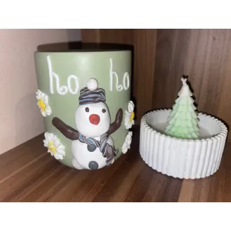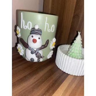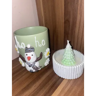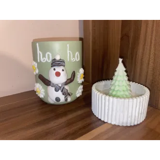 Lumânare din ceara de soia parfumată,cu decor specific de Crăciun. Turnată în recipient din praf ceramic. Totul este lucrat manual,personalizabil. Produsul vine ambalat ca în poză.