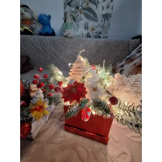 CerAlex va propune un aranjament din lumânări parfumate, brad artificial rezistent, crenguțe cu fructe roșii și figurine pentru a va bucura din plin de magia sarbatorilor