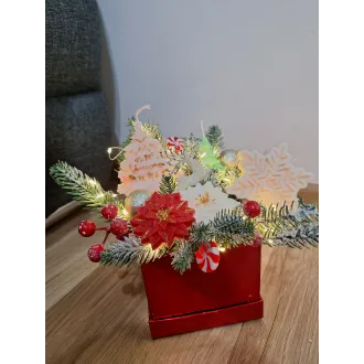 Acest buchet de sărbători, realizat manual, combină flori delicate cu elemente care evocă spiritul Crăciunului, având în centru un glob care amintește de brad. Aranjamentul este lucrat cu atenție, oferind o amprentă emoțională deosebită și aducând bucurie celor care îl primesc. Florile și elementele decorative sunt alese pentru a crea un buchet armonios și festiv, care să transmită căldură și rafinament în orice încăpere. Este ideal pentru cadouri de Crăciun, pentru aniversări în perioada sărbătorilor sau pentru momente speciale petrecute alături de familie și cei dragi. Acest aranjament floral nu este doar un cadou, ci un gest plin...