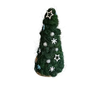 Brăduțul este lucrat manual din sisal, având suport o felie de lemn. Este împodobit cu diverse ornamente. Are înălțimea de aproximativ 21-22 cm. Perfect pentru a fi așezat pe masa festivă de Crăciun sau de asemenea, poate fi un cadou drăguț în prag de sărbători.