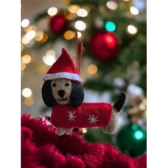 Un cățeluș drăguț pentru pomul de Crăciun! Este cusut manual din fetru și umplut cu puf hipoalergenic.