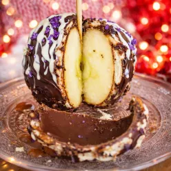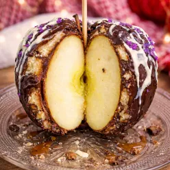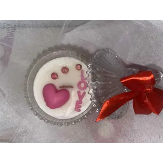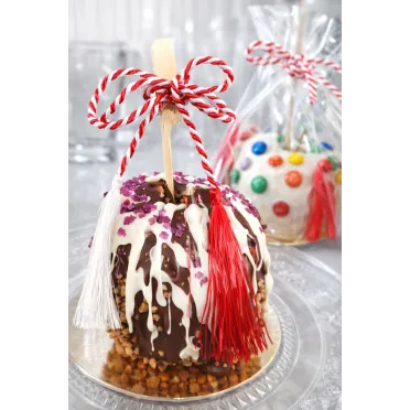 Mar glazurat cu 3 straturi: ciocolata + caramel + ciocolata. Fir de martisor elegant si gros la alegere.