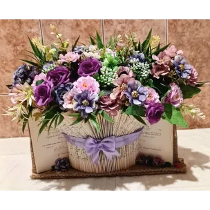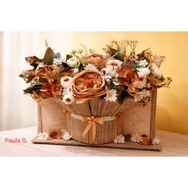 Un frumos aranjament creat pe o carte veche,  recondiționată și îmbrăcată în iută! Are lungime de 35 cm și înălțime de 33 cm! Oferă un cadou inedit care rămâne frumos peste timp, iar fiecare detaliu transmite apreciere, respect și emoție!