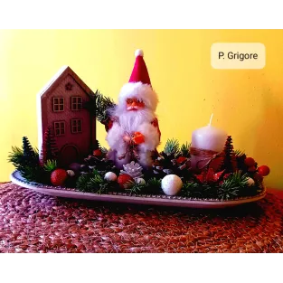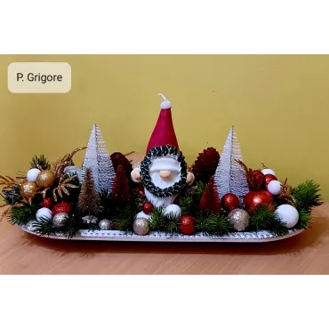 CerAlex va propune un aranjament din lumânări parfumate, brad artificial rezistent, crenguțe cu fructe roșii și figurine pentru a va bucura din plin de magia sarbatorilor