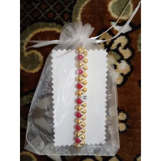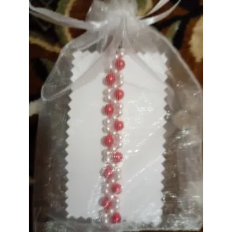 Această lumânărică delicată, creată special pentru fetițe, este așezată într-un mic recipient elegant și împodobită cu un trandafir fin care îi oferă un aer de puritate și rafinament. Ambalată cu atenție, transmite căldura și emoția zilei de botez, devenind o  amintire plină de lumină și tandrețe. Un dar suav, care păstrează în suflet frumusețea unui moment unic.