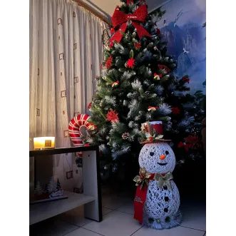 Omul de zăpadă, o decorațiune care va atrage toate privirile, și aduce spiritul Crăciunului în orice casă! Potrivit ca decor sau cadou pentru cei dragi! 55 cm înălțime și instalație led pe baterii!