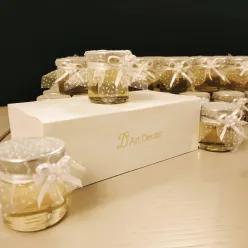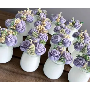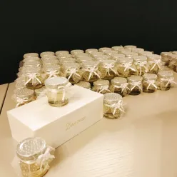 Lumânare parfumată din ceară de soia, turnată într-un borcănel din sticlă.Borcănașele ușor de transportat și foarte versatile, căci pot fi personalizate în multe feluri și cum un minim de resurse pentru a se potrivi atmosferei pe care vrei să o imprimi evenimentului tău.Parfumul lumânării îl poți alege în funcție de tematica evenimentului, la fel si decorarea recipientului. Putem să colorăm ceara în nuanța pe care ți-o dorești sau să adăugăm sclipici – opțiune gratuită.Putem să decorăm vasele cu etichete (pe designul furnizat de tine), șnururi, panglici, flori din hârtie figurine, fire de lavandă/spice de grâu/flori din bumbac ș.a. –...