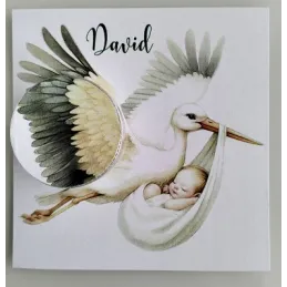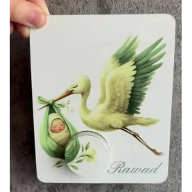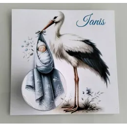 Cadou personalizat pentru botez – cu cremă naturală pentru bebeluși Acest cadou elegant și rafinat este conceput special **pentru botez**, fiind o amintire deosebită a unei zile cu adevărat importante. Designul său delicat ilustrează un cocor care aduce cu grijă un nou-născut învelit într-un săculeț albastru, simbolizând sosirea unui suflet pur în familie. În partea de jos a cardului este integrat un mic recipient care conține **cremă naturală pentru bebeluși**, ideală pentru îngrijirea blândă a pielii sensibile a celor mici. Fiecare exemplar este **personalizat la cerere** cu: * **prenumele bebelușului** * și **data botezului** (sau,...