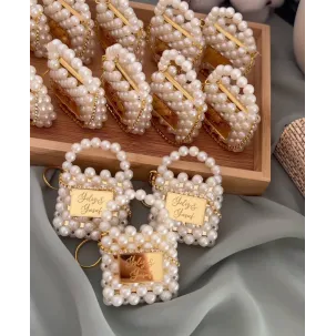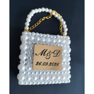 Marturii cadouri pentru nunti, botezuri si evenimente. Geantă cu perle, etichetă exclusivă, nume și dată personalizate. Geanta poate fi personalizată cu o fotografie unică sau delicii dulci, în funcție de preferințele tale. Pentru comenzi mai mari, solicitați oferta noastră individuală de preț prin adresa de e-mail d.artdecoor@gmail.com
