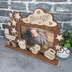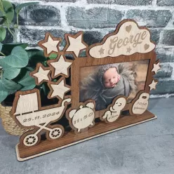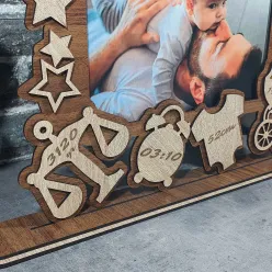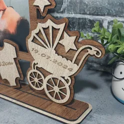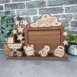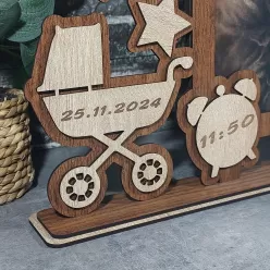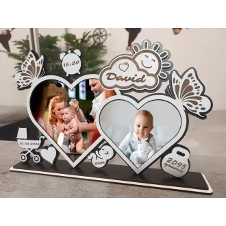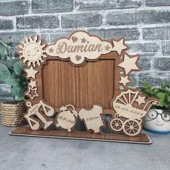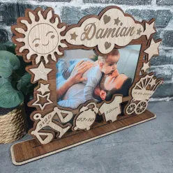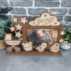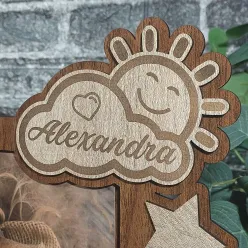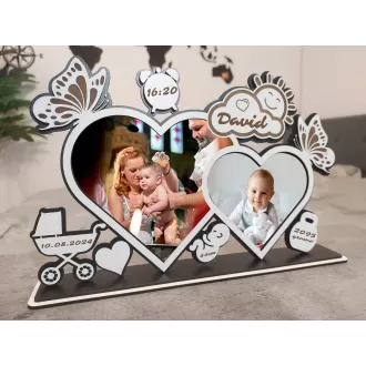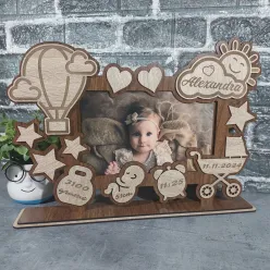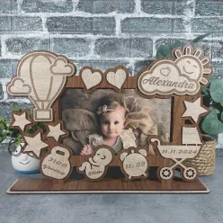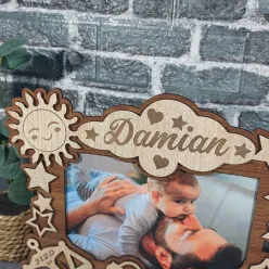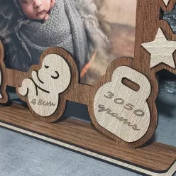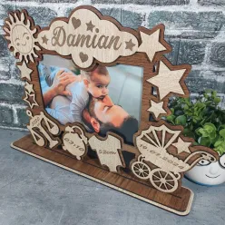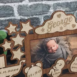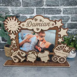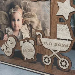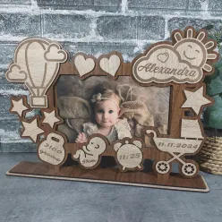 Capturează fiecare zâmbet, gângurit și moment de tandrețe cu această rama foto personalizabilă, creată special pentru nou-născuți. Cu un design delicat și plin de căldură, această ramă va transforma fiecare fotografie într-o amintire de neuitat, păstrată cu dragoste pentru anii ce vor veni. Adaugă un plus de magie și farmec primei fotografii a bebelușului tău și creează un colț special în casa ta, unde fiecare privire aduce un zâmbet