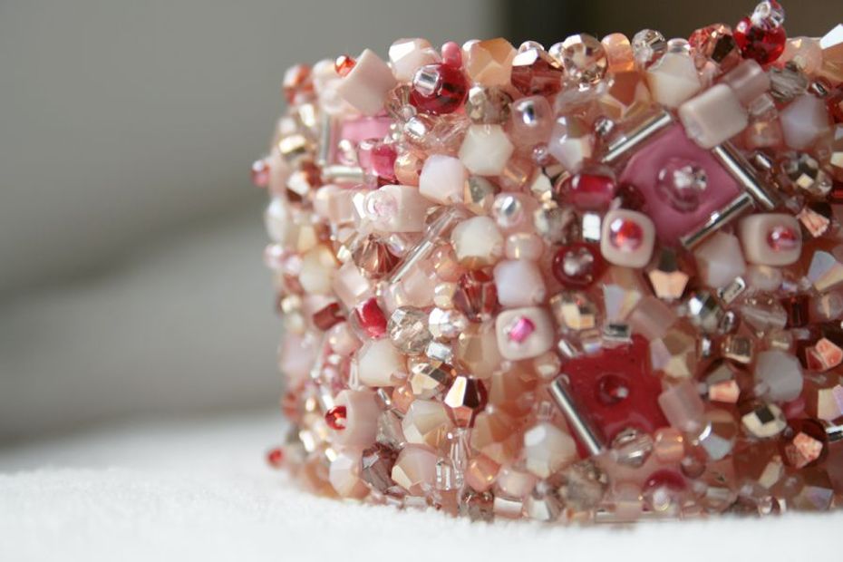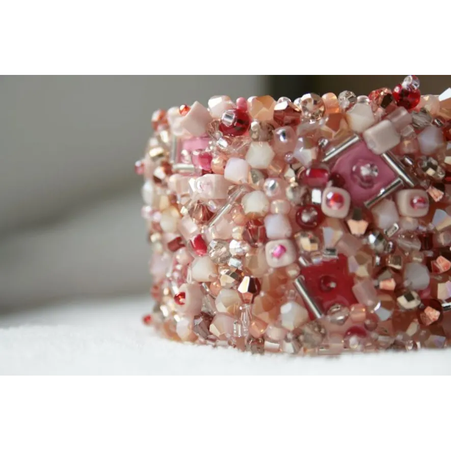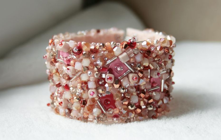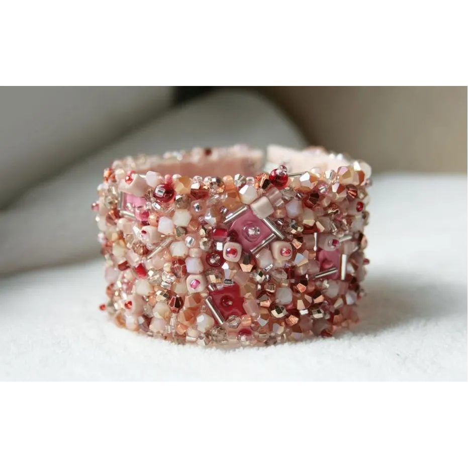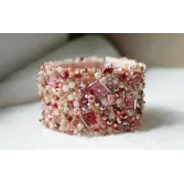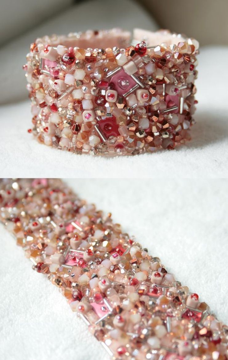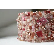 Bratara realizata din margele de sticla si vopsea acrilica pe fetru. Prinderea se face cu inchizatori "mos si baba".