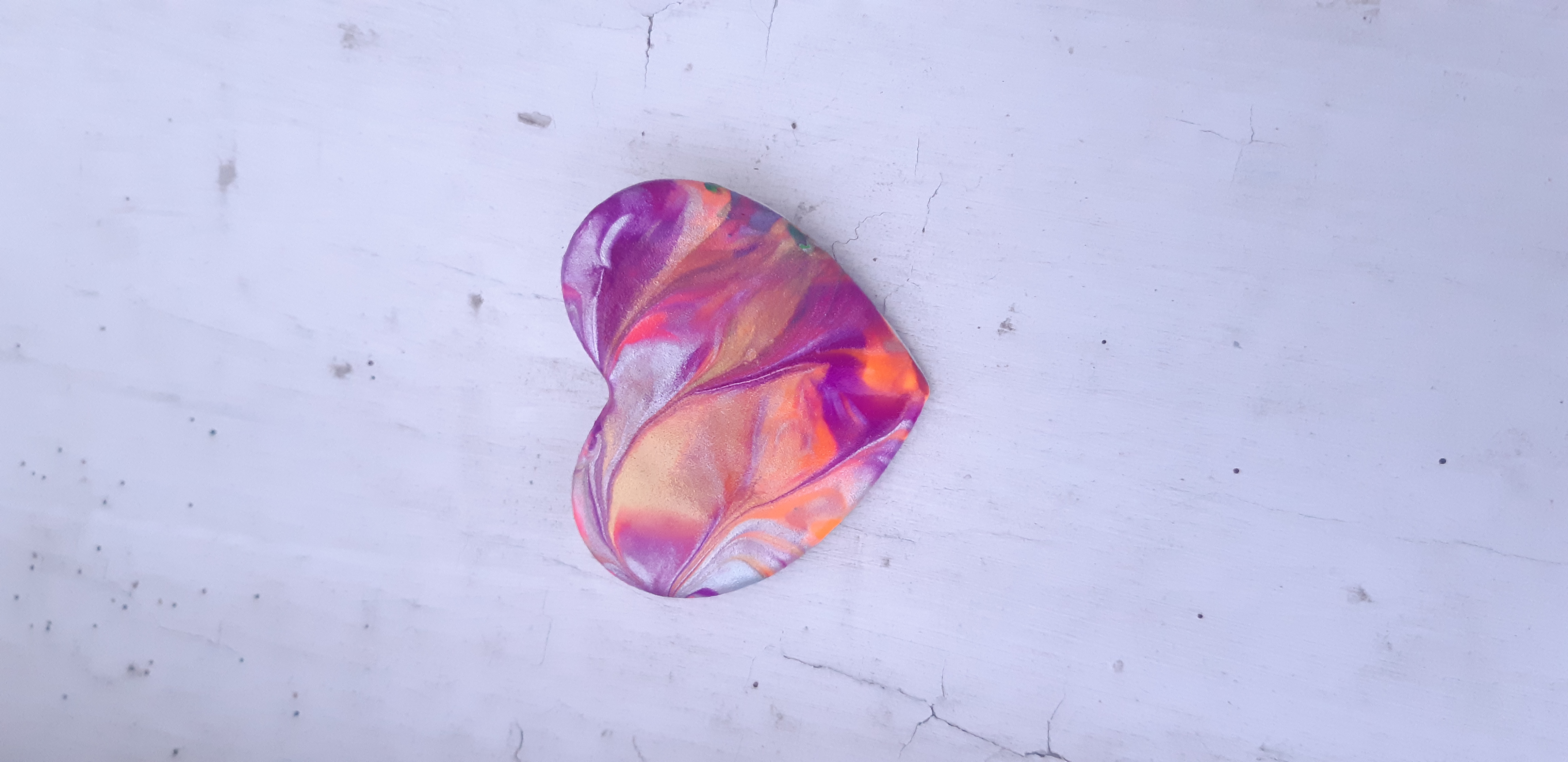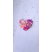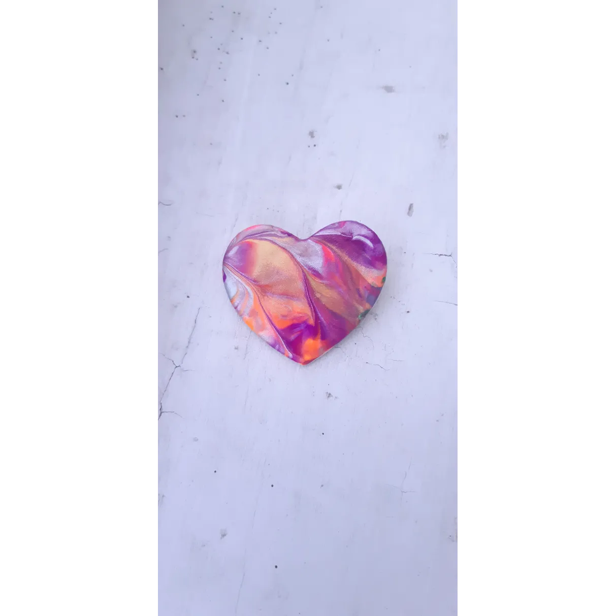 Brosa in forma de inima, realizata din lut si vopsea, si lacuita cu vernis. Prinderea se face cu ac de brosa din inox. Dimensiune: 3,7 x 3,4 cm Culorile pot varia usor, in functie de setarile fiecarui monitor.