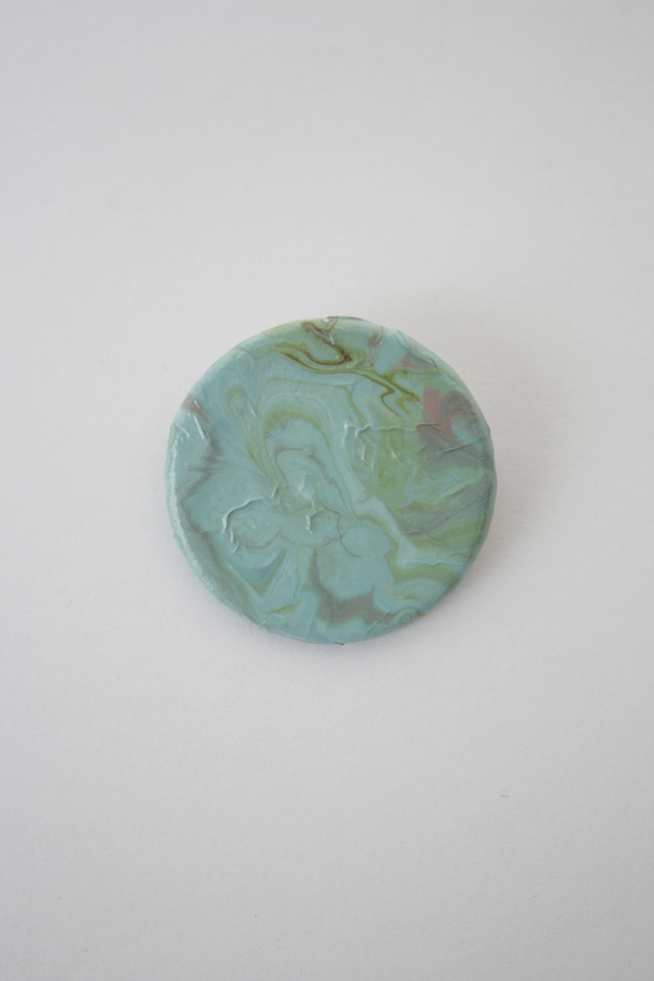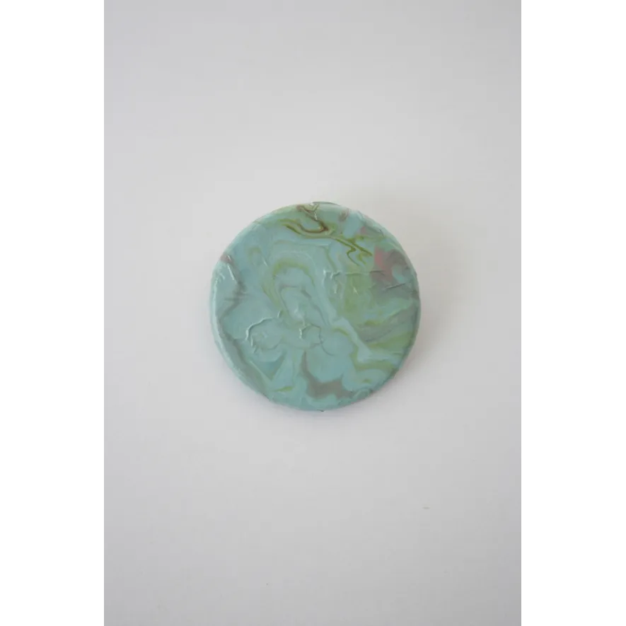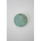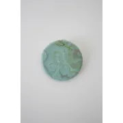 Brosa rotunda realizata din lut, peste care am aplicat o pelicula din vopsea acrilica. Brosa este lacuita cu vernis. Prinderea se face cu ac de brosa. Diametru: 3,3 cm Culorile pot varia usor, in functie de setarile fiecarui monitor.
