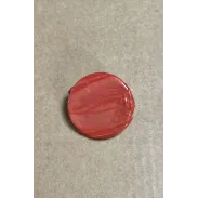 Brosa rotunda, realizat din vopsea acrilica aplicata pe o baza din lut. Brosa este lacuita cu vernis. Prinderea se face cu ac de brosa din inox. Diametru: 2,7 cm.