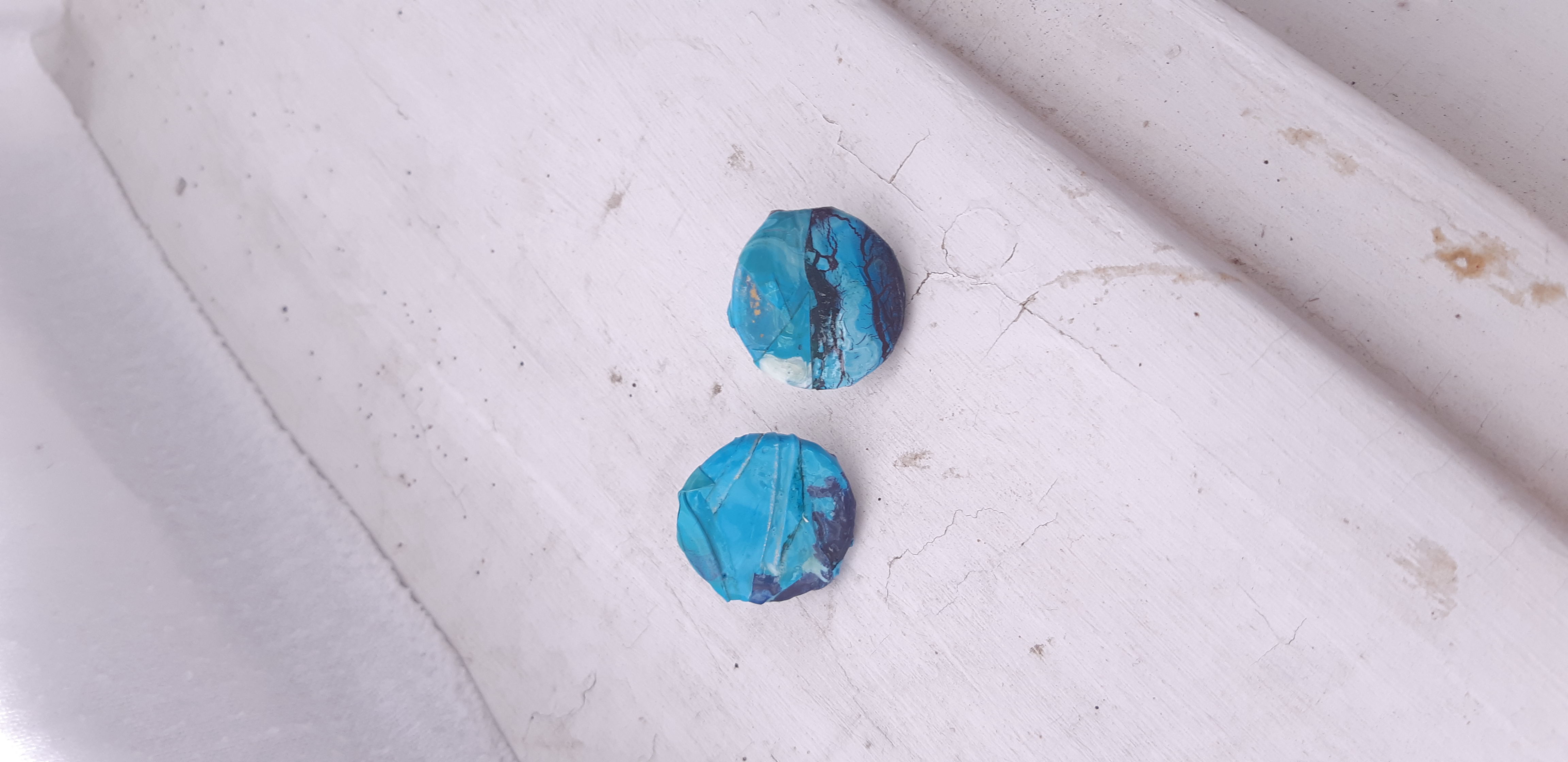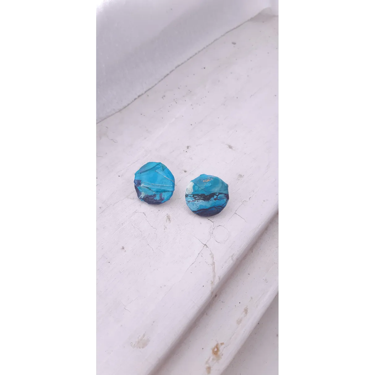 Cercei rotunzi realizati din lut, peste care am aplicat o pelicula de vopsea acrilica. Sunt finisati cu vernis si se prind cu tija din inox si dop de silicon. Diametru: aprox. 2 cm Culorile pot varia usor, in functie de setarile fiecarui monitor.