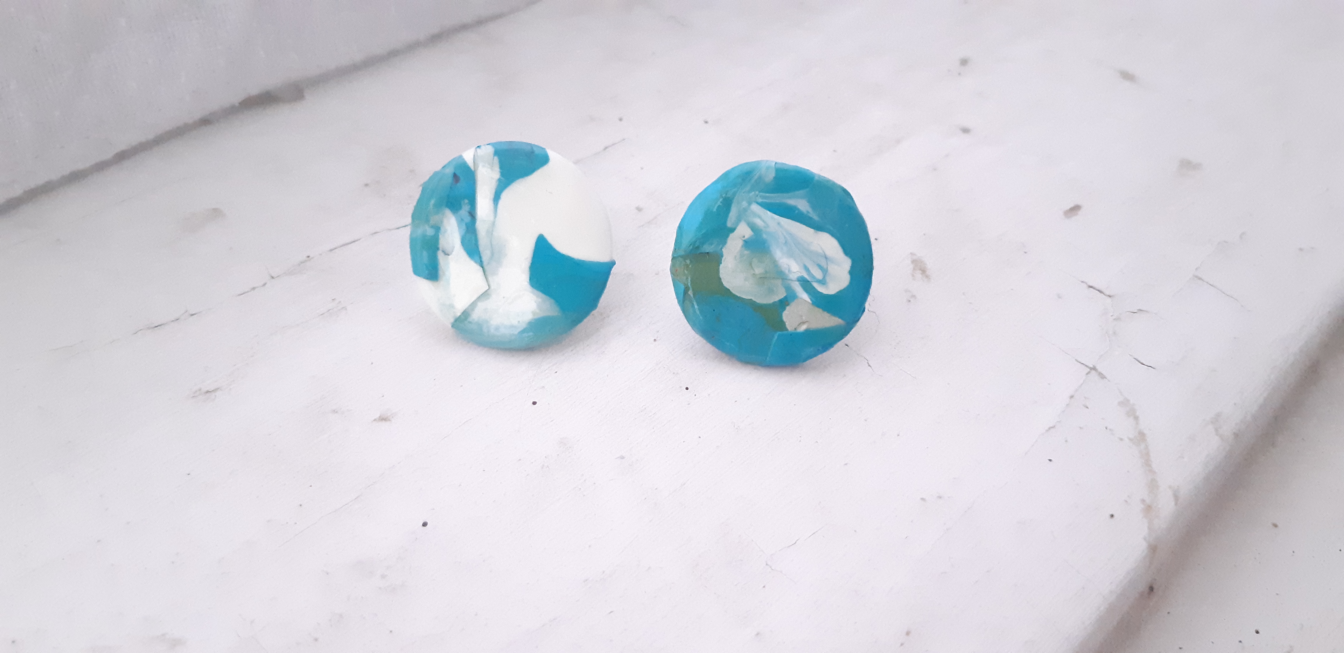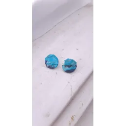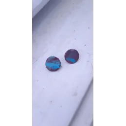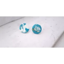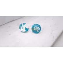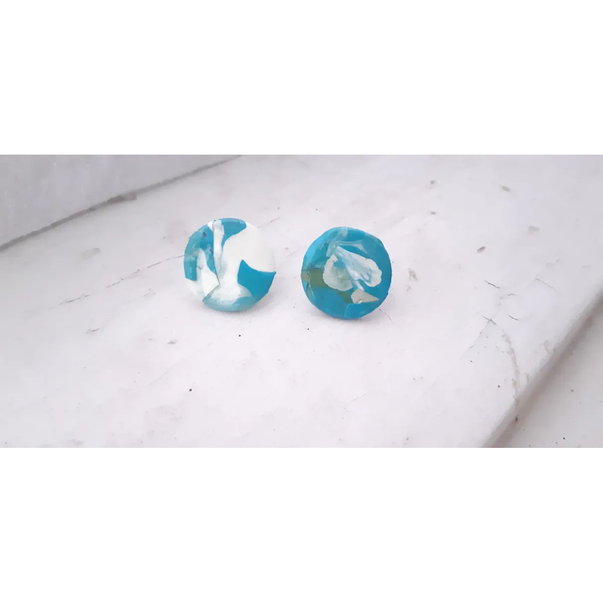 Cercei rotunzi realizati din lut, peste care am aplicat o pelicula de vopsea acrilica. Sunt finisati cu vernis si se prind cu tija din inox si dop de silicon.Diametru: aprox. 2 cmCulorile pot varia usor, in functie de setarile fiecarui monitor.