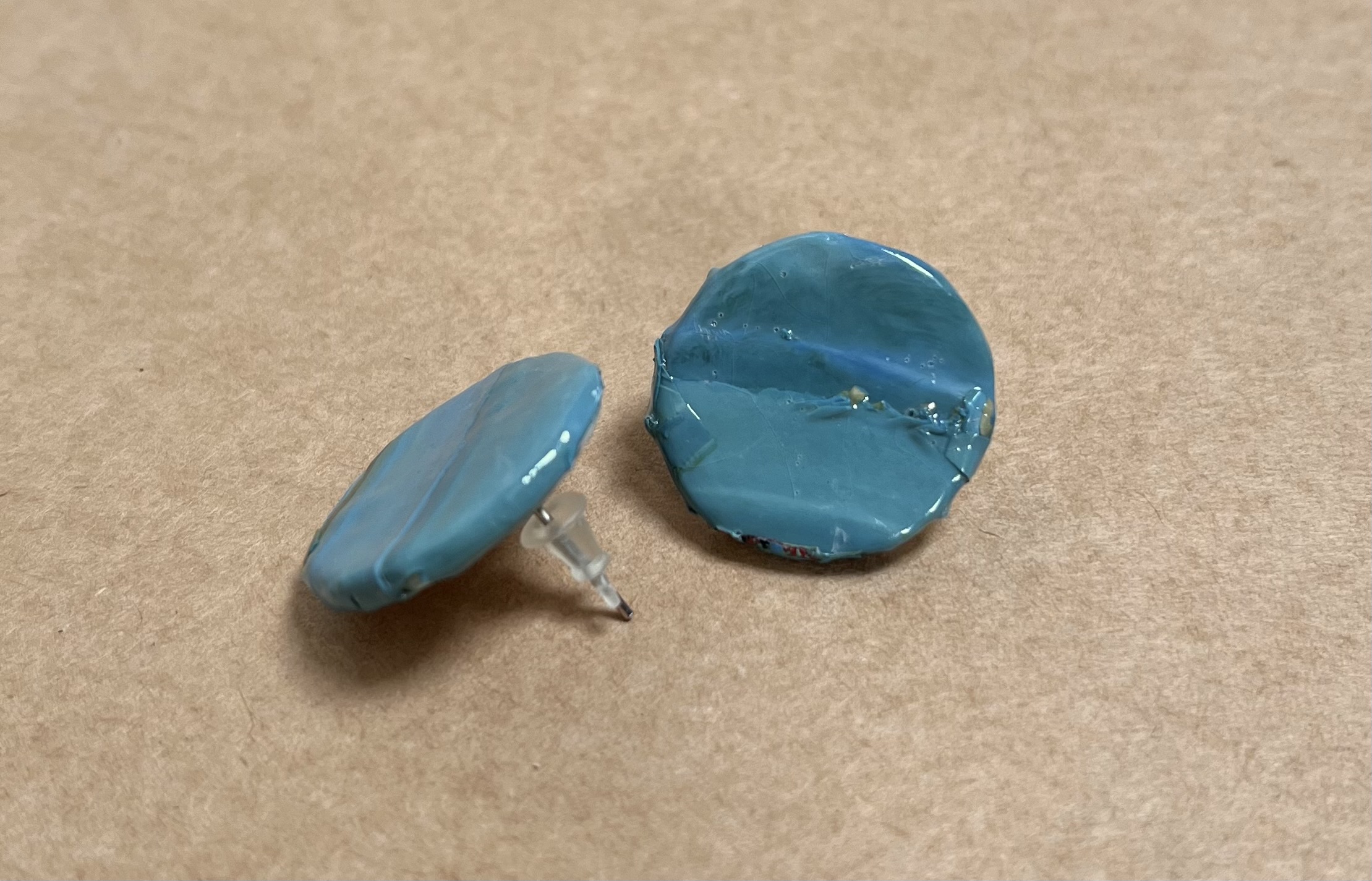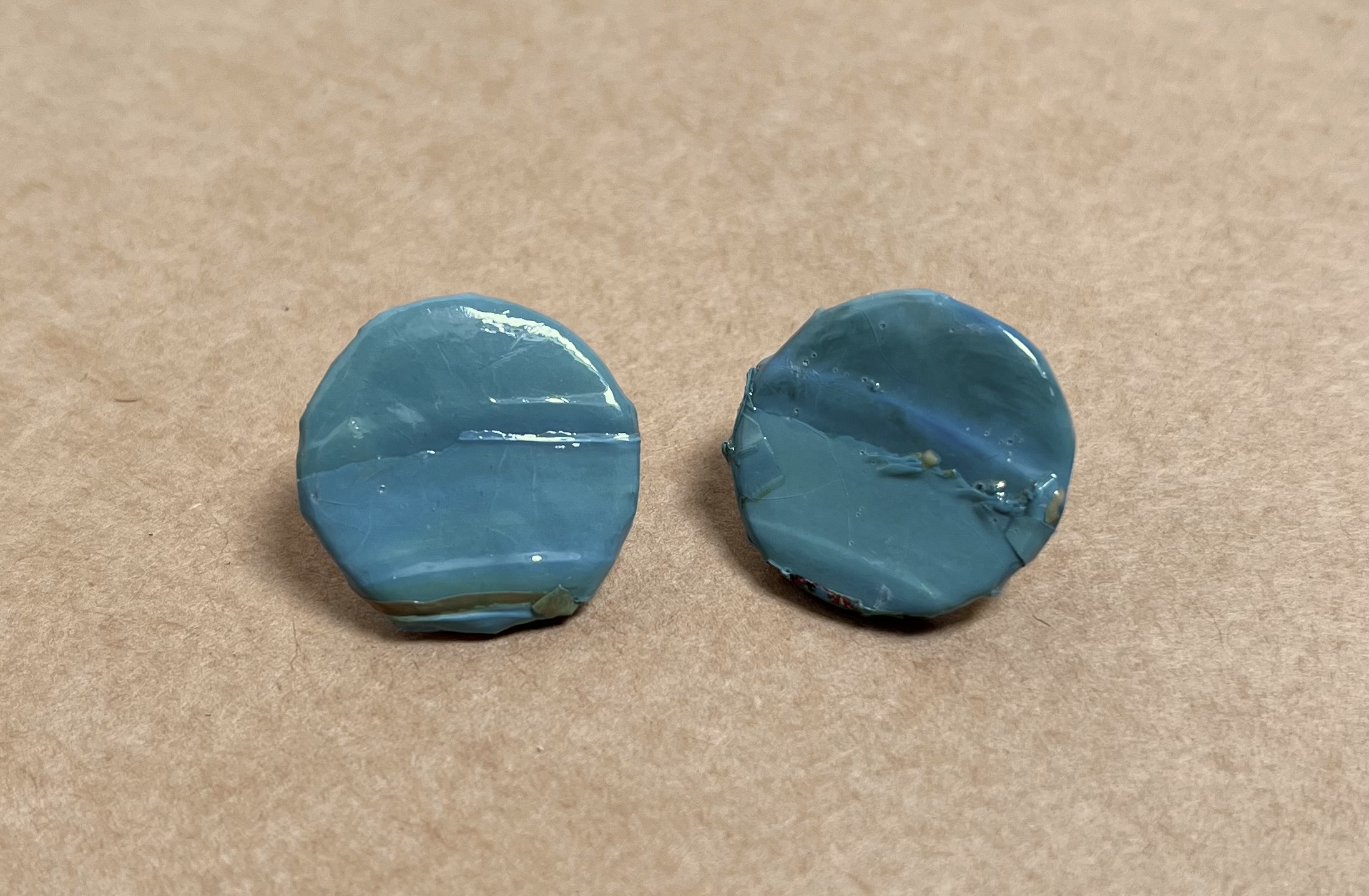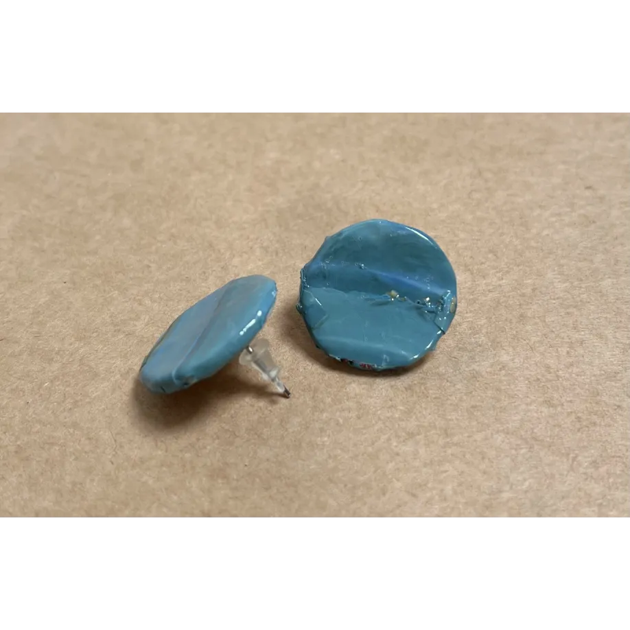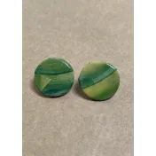 Cercei realizati din vopsea acrilica aplicata pe o baza din lut. Prinderea se face cu tija din inox si dop de silicon. Diametru 2 cm. Modelul este unicat si nu se poate reproduce.