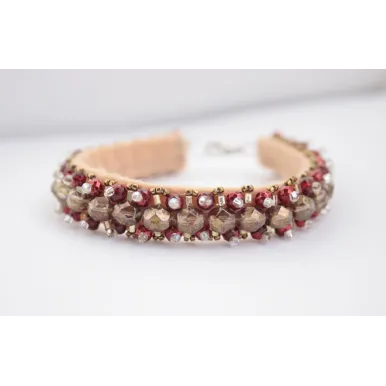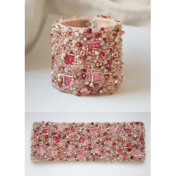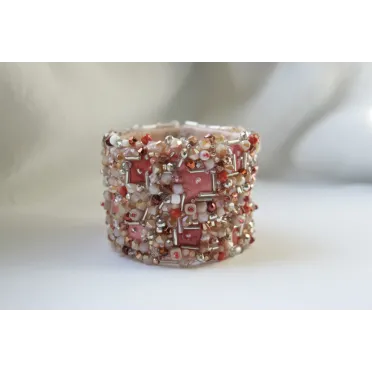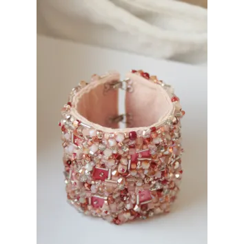 Bratara realizata din margele de sticla, margele Cehia si perle Swarovski pe fetru. Prinderea se face cu inchizatori "mos si baba". Latime: 6,2 cm Lungime broderie: 16 cm Lungime cu inchizatori: 16,5 cm