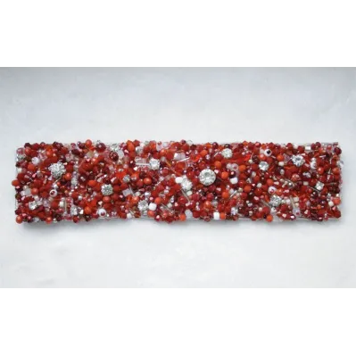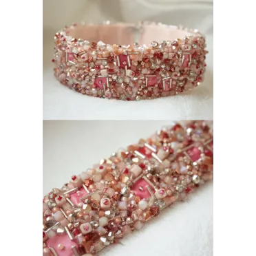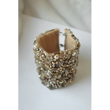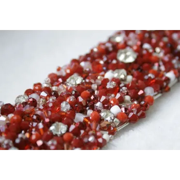 Bratara realizata din margele de sticla si cristale cusute pe fetru. Prinderea se face cu inchizatori "mos si baba". Latime: 4 cm Lungime: 16,5 cm