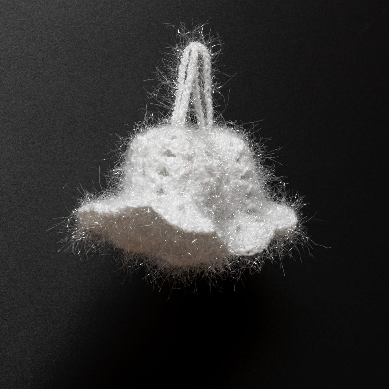 Globulet pentru brad crosetat forma clopotel. Ornament pentru brad.