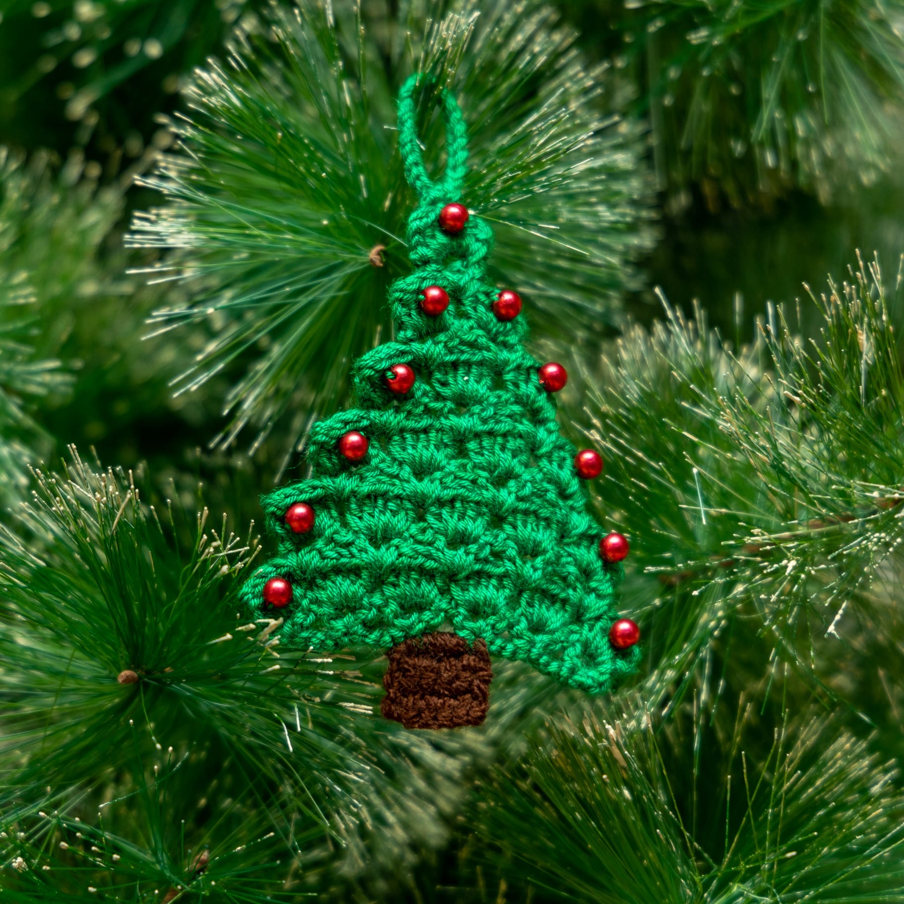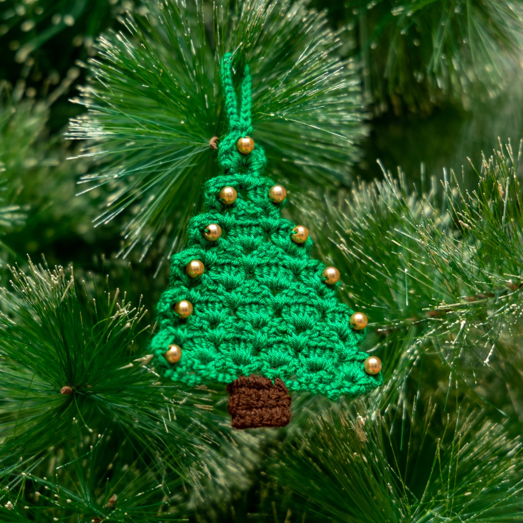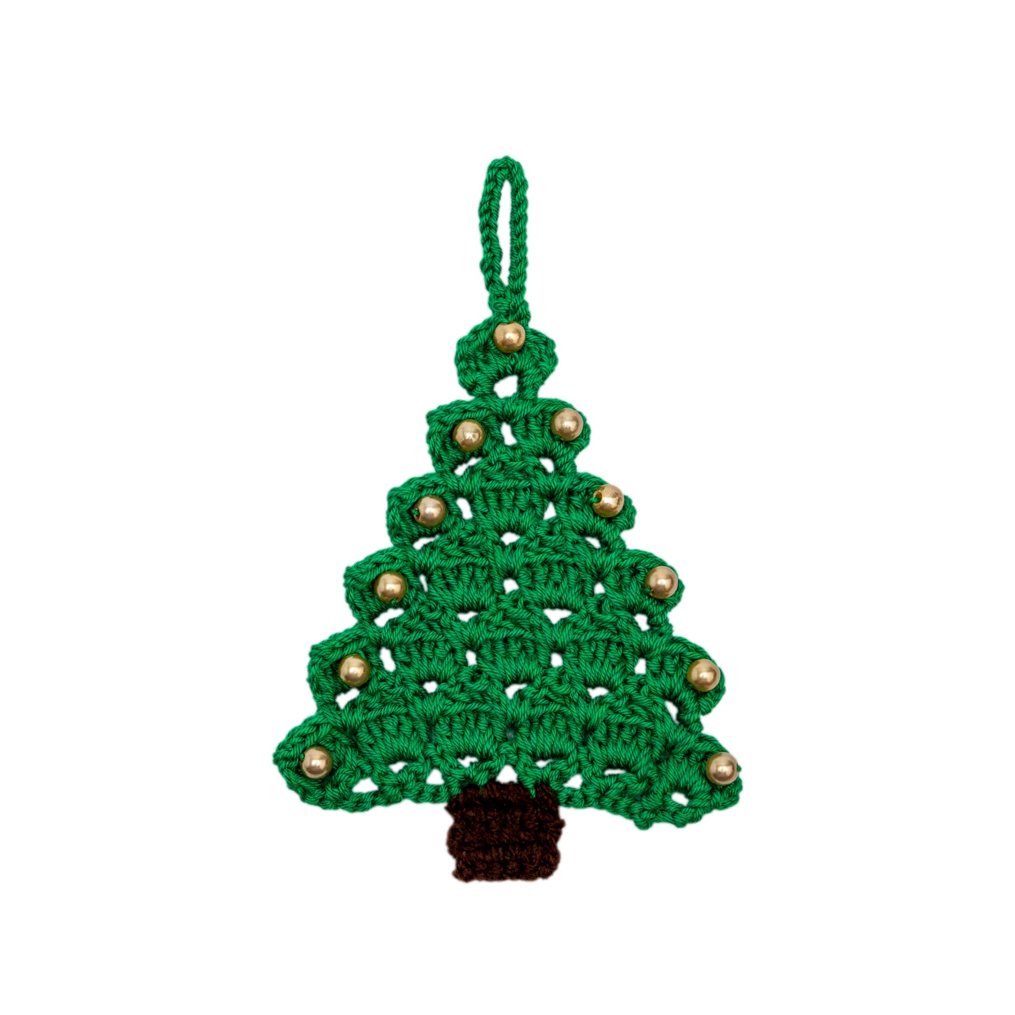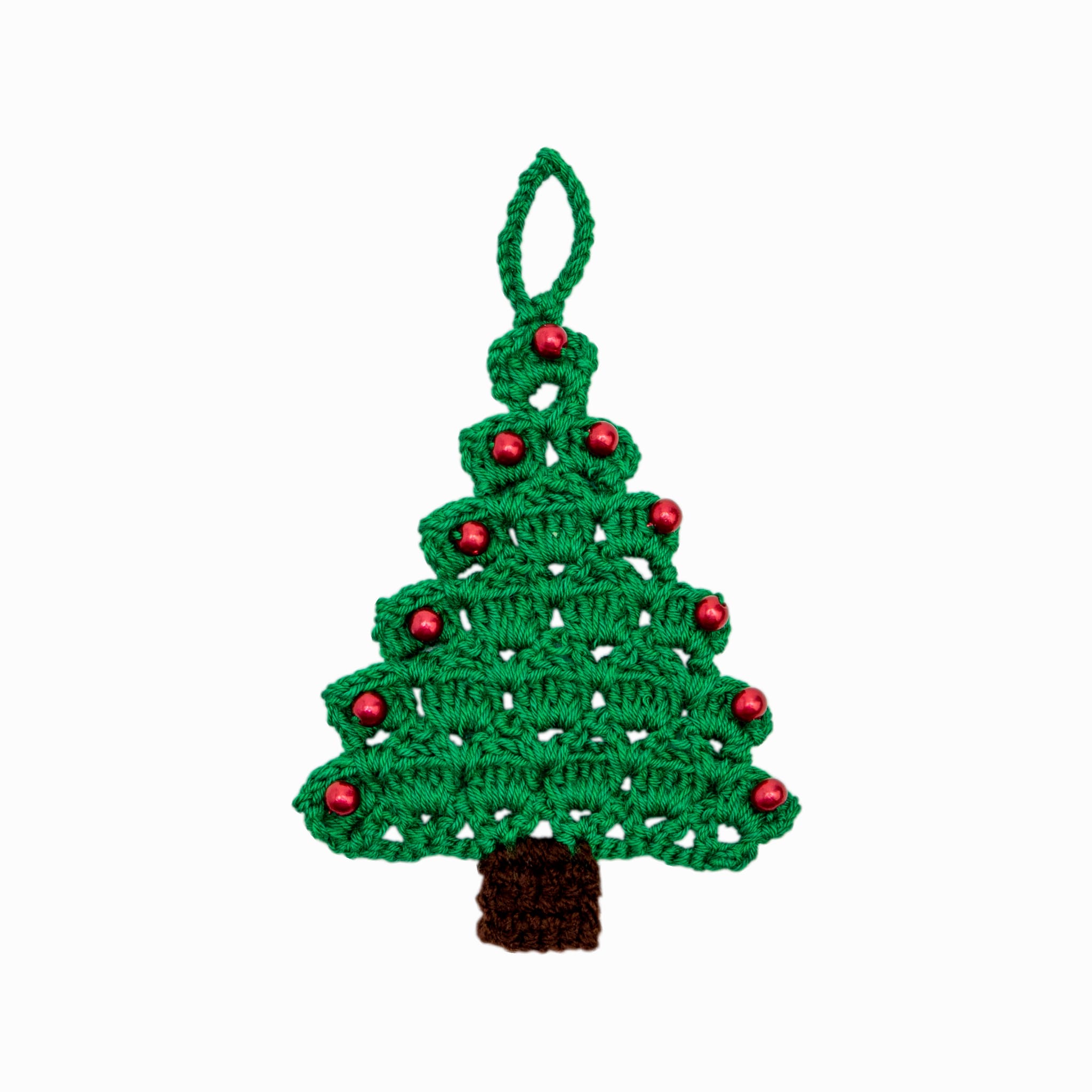 Ornament pentru bradul de Craciun. Bradut crosetat cu margele. Globulet pentru brad.