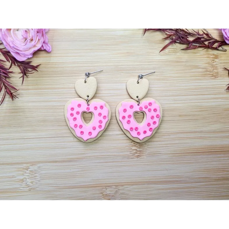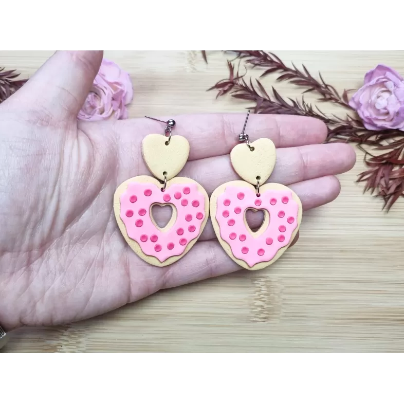 Adaugă un strop de dulceață stilului tău de Valentine’s Day cu acești cercei inspirați de fursecurile glazurate! Realizați manual din lut polimeric, acești cercei ușori au forma unor inimioare delicioase, decorate cu glazură roz și detalii fine cu buline. Perfecți pentru a sărbători iubirea, a oferi un cadou special sau pur și simplu pentru a te răsfăța cu un accesoriu unic și vesel.
