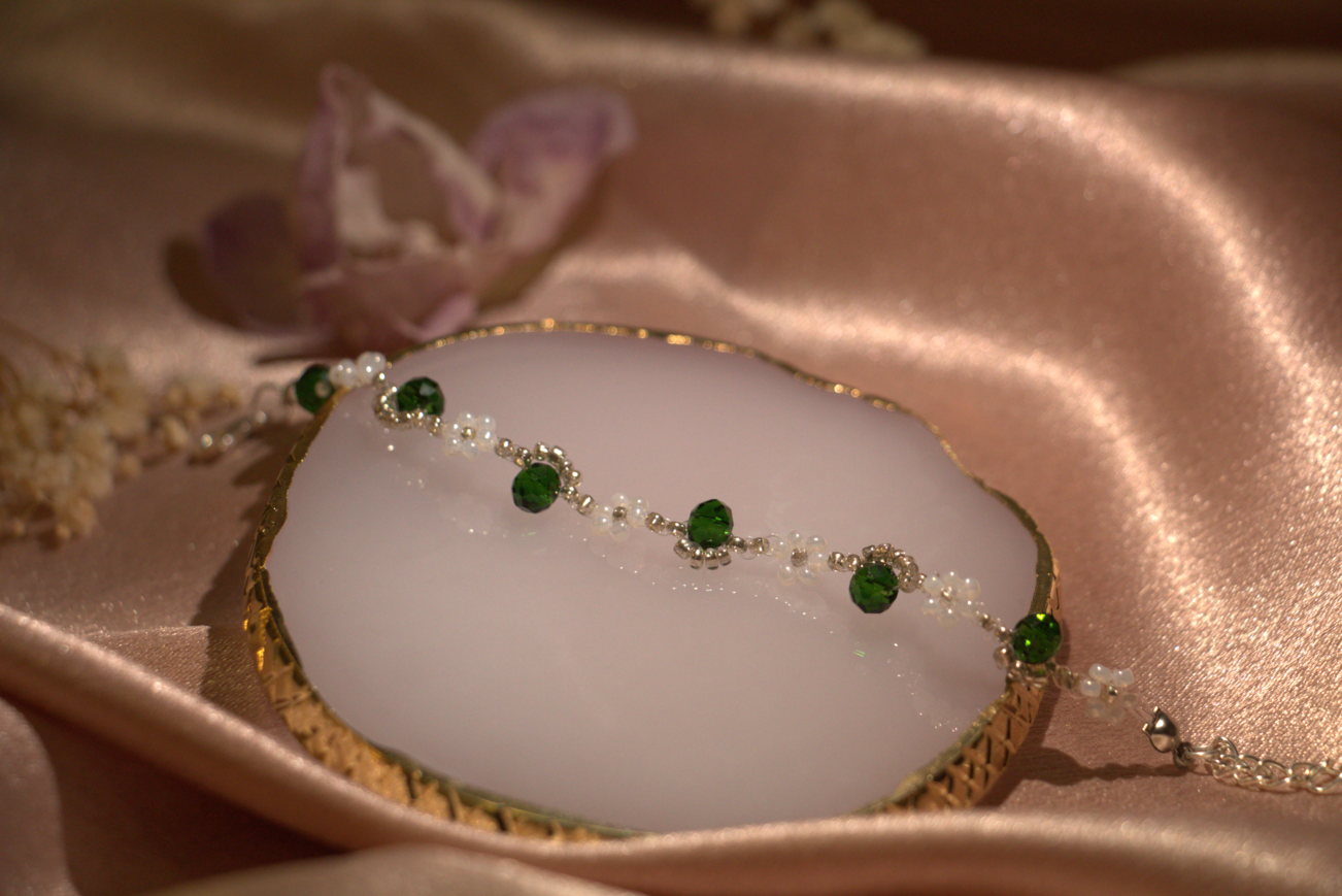 Emerald Garden este inspirată de natură, combinând cristale verde smarald cu accente albe fine. Rezultatul este un accesoriu proaspăt, elegant și atemporal, ușor de purtat în orice sezon.