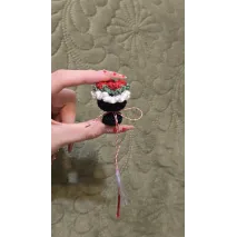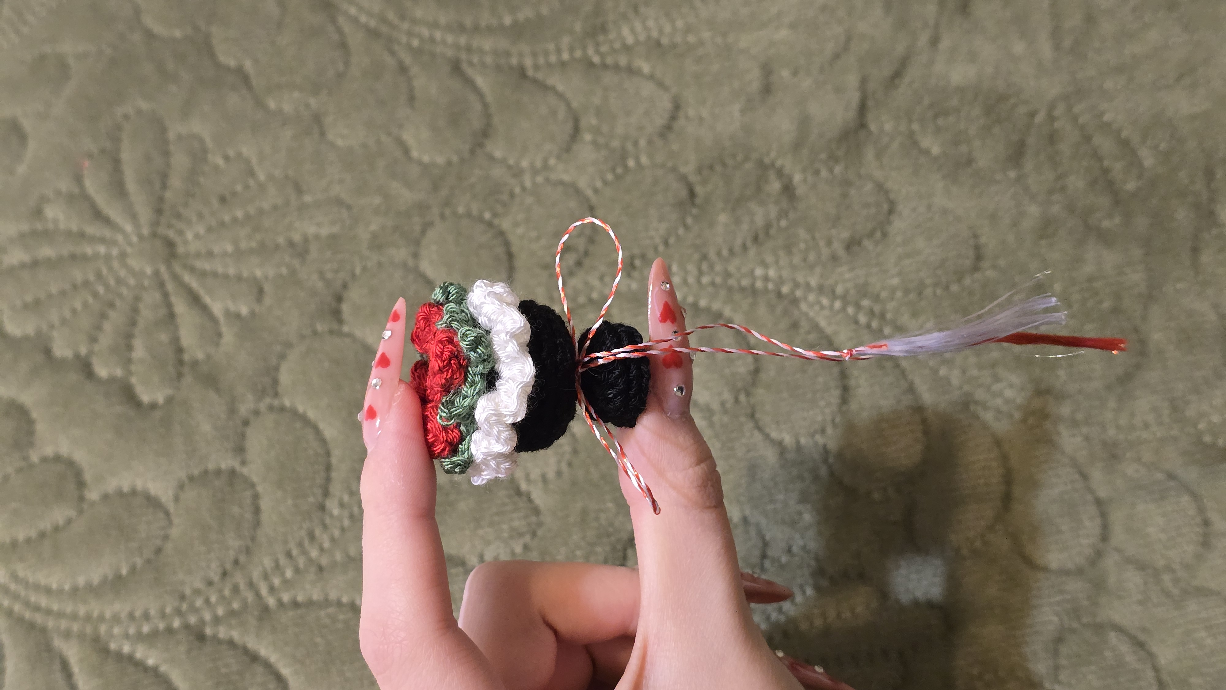 Mărțișor tip broșă, croșetat. Buchet mic cu 5 de flori.