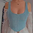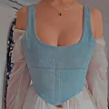 Corset realizat dintr-o pereche de pantaloni din denim. Sustinere prin balene si inchiderea se face prin 2 funde.