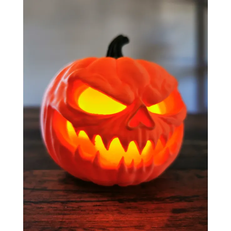 Halloween-ul nu e complet fără un dovleac care pândește din întuneric. Această figurină Jack-O’-Lantern combină vibe-ul clasic al sărbătorii cu siguranța unei lumânări LED care pâlpâie ca o flacără reală. Cu fața lui malițioasă și lumina portocalie care se revarsă prin ochi și colți, e mai mult decât un simplu decor: e gardianul petrecerii tale de Halloween.