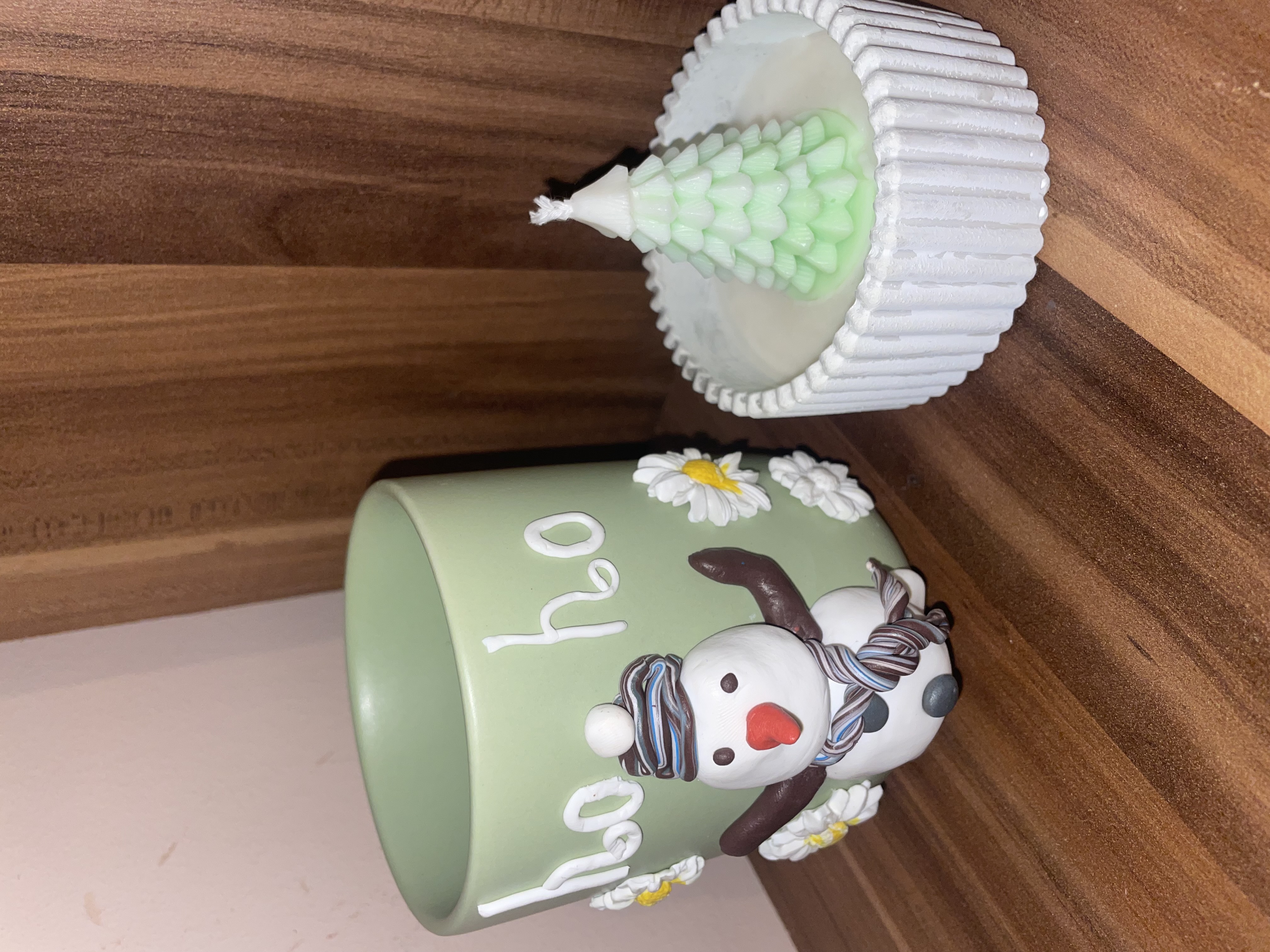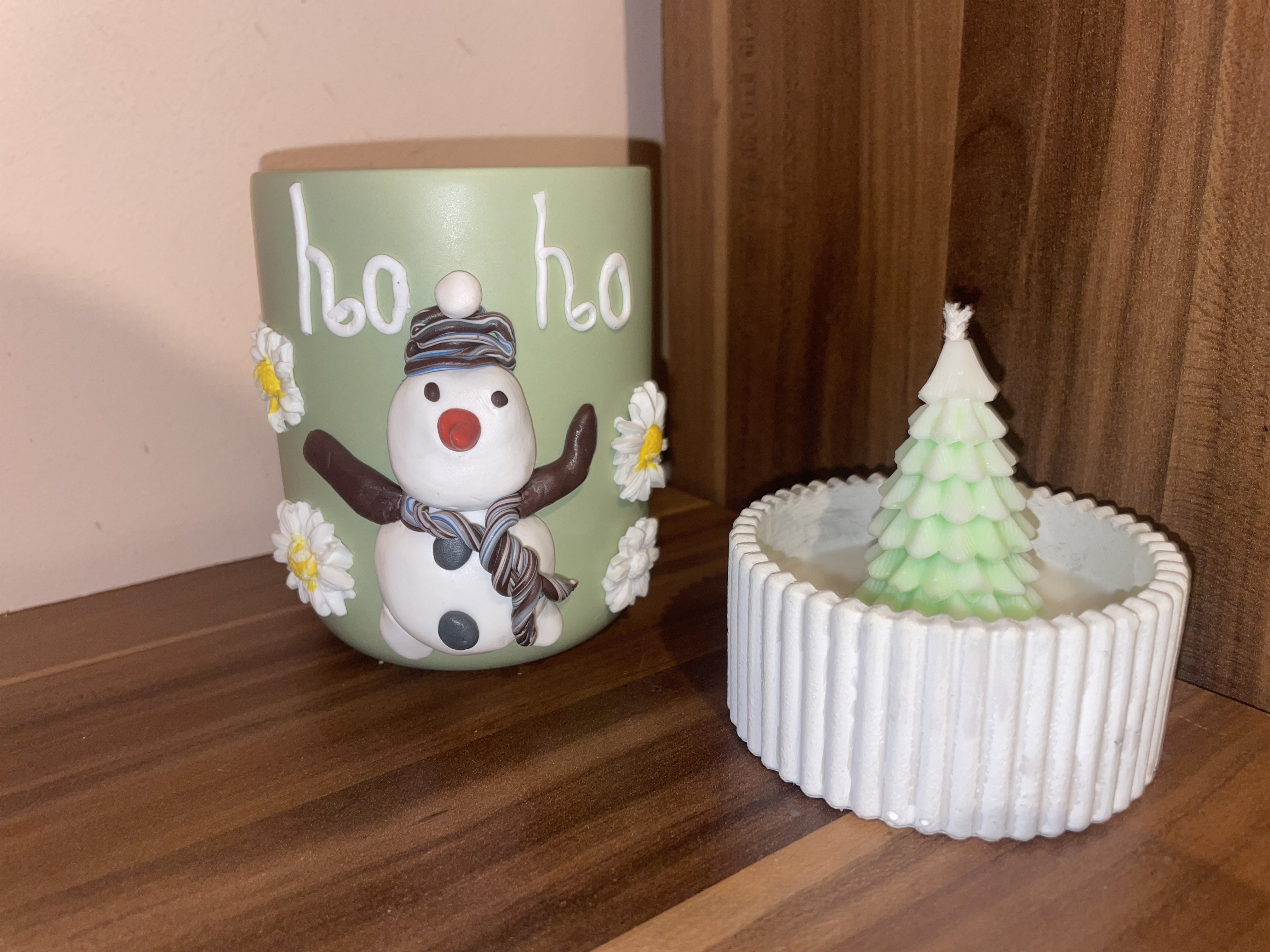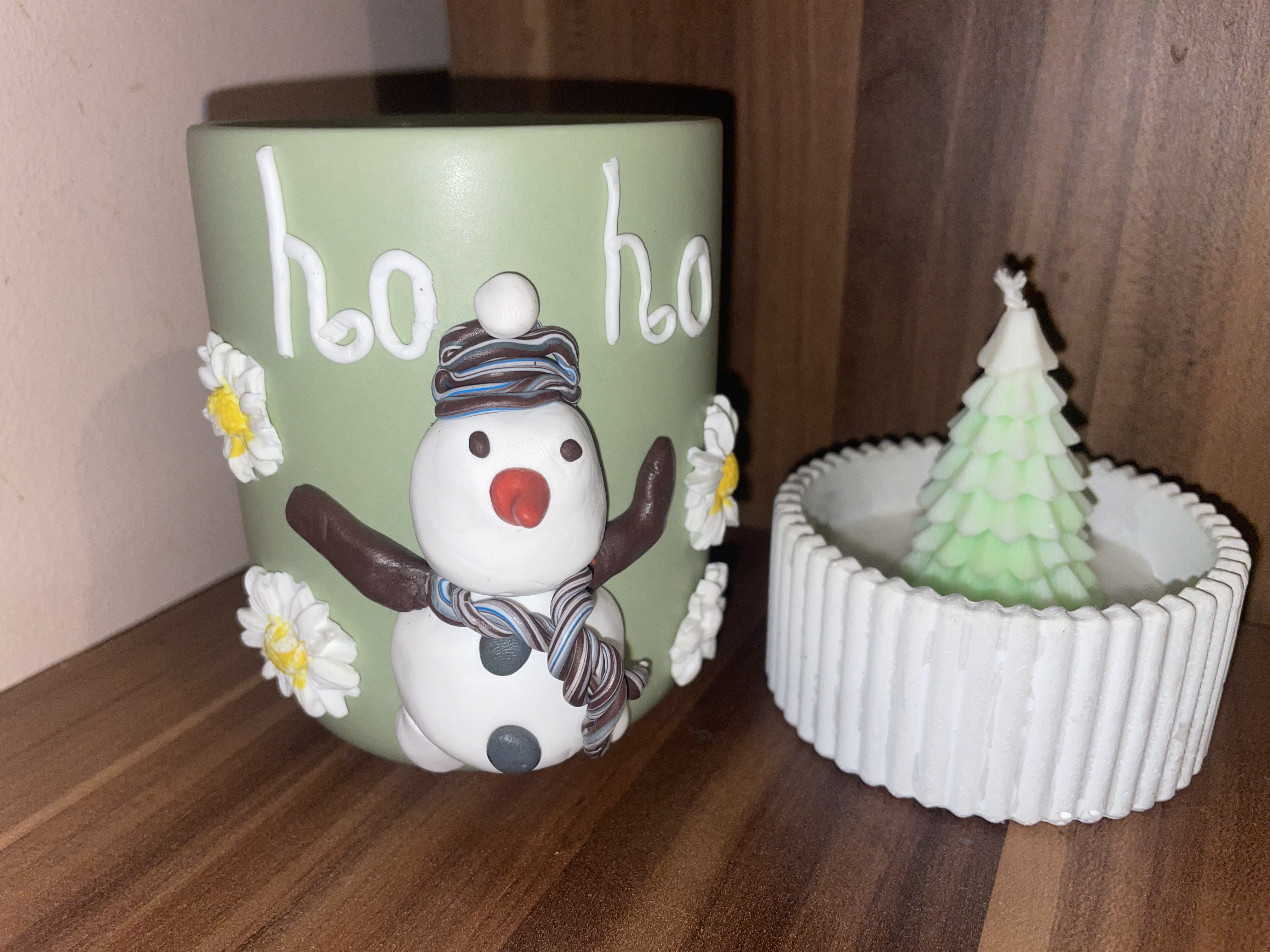 Set cana personalizata cu accesorii fimo si lumanare parfumata cu parfum de vanilie si cocos!