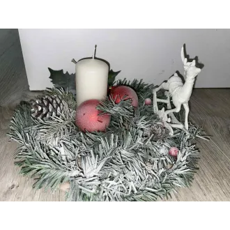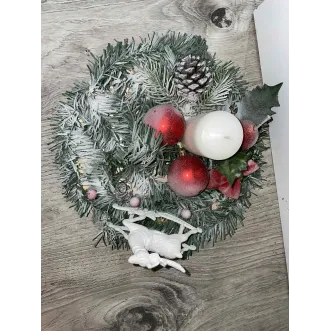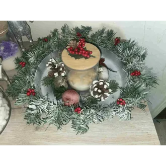 Aranjament pentru masa de Craciun realizat manual din ceara naturala.