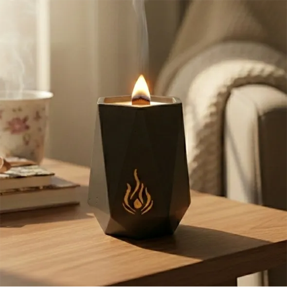 Sustenabilitate: Ingredientele sunt eco-friendly, iar recipientul poate fi reutilizat ca ghiveci pentru plante suculente sau suport pentru accesorii după finalizarea arderii.