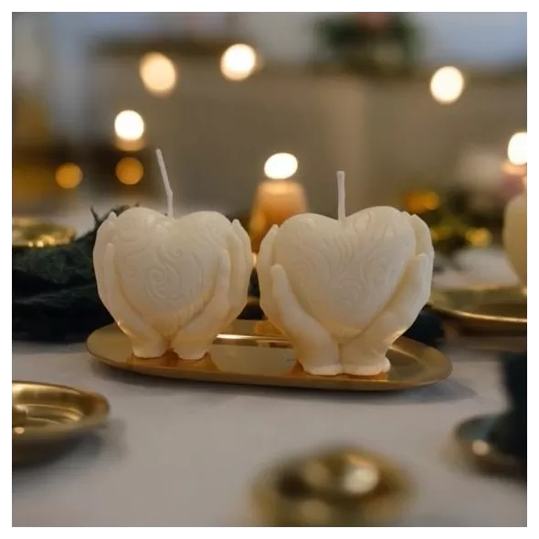 O lumânare în formă de inimă în palme este o piesă simbolică și emoționantă, care combină frumusețea artei cu un mesaj profund de protecție și grijă.