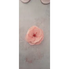 Material: Voal fin în nuanța piersicii, tăiat și modelat manual pentru a crea petale bogate și aerate.