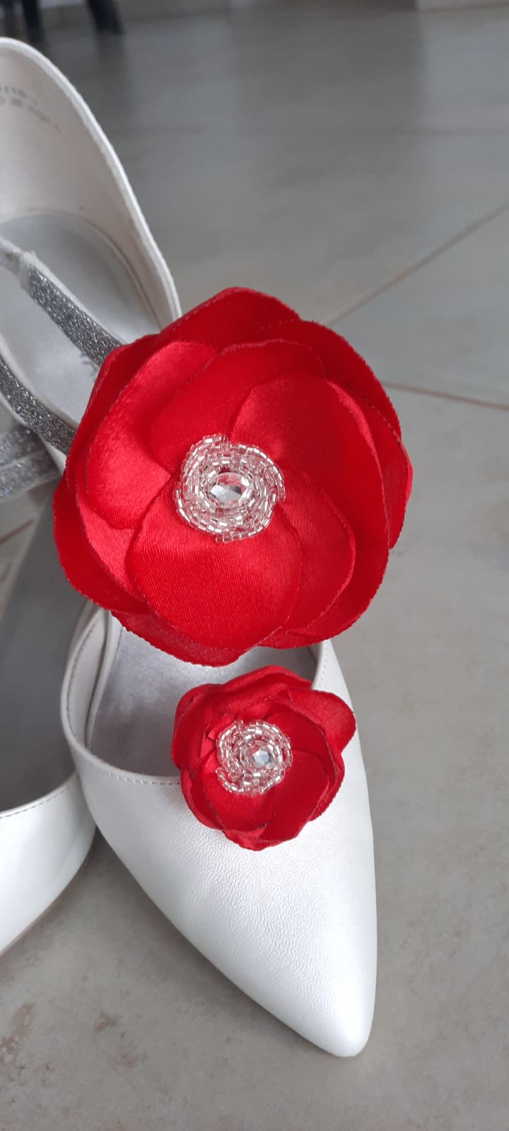 Set Accesorii "Red Elegance" – Accesoriu multifuncțional (broșă/agrafă) și clipsuri de pantofi