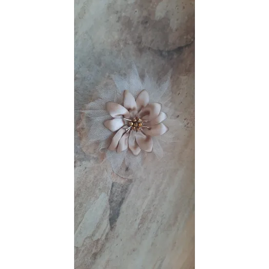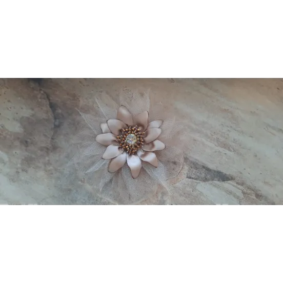 Broșă & Agrafă "Champagne Bloom" – eleganță în straturi O bijuterie textilă care emană rafinament și delicatețe. Această floare artizanală este mai mult decât un accesoriu; este o piesă statement creată pentru a aduce o notă de lux discret oricărei ținute. Prin suprapunerea armonioasă a materialelor premium, am obținut un design spectaculos, care pare să prindă viață la fiecare mișcare. Detalii de design și materiale: Petale din saten: Centrul florii este definit de petale din saten fin, cu o strălucire perlată ce oferă o notă clasică și prețioasă. Aureolă din tull: Marginile exterioare sunt realizate din tull diafan, oferind...