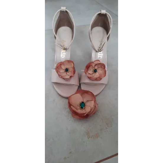 Set Accesorii "Terra Emerald" – Broșă/Agrafă și Clipsuri de Pantofi Eleganța tonurilor de pământ întâlnește strălucirea regală a smaraldului. Acest set lucrat manual este o piesă de colecție, creată pentru a oferi o notă sofisticată și caldă oricărei ținute. Nuanța deosebită de teracotă conferă un aspect organic și nobil, fiind fundalul perfect pentru detaliile strălucitoare din centrul florilor. Componentele setului: 1 Accesoriu multifuncțional (broșă & agrafă de păr): Floarea principală dispune de un sistem de prindere dual, putând fi purtată atât în păr, pentru un look romantic, cât și ca broșă pe haine sau accesorii. 2...